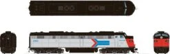 The EMD FP7 was a 1,500 horsepower (1,100 kW), B-B passenger-hauling diesel locomotive produced between June 1949 and December 1953 by General Motors’ Electro-Motive Division and General Motors Diesel. Final assembly was at GM-EMD’s La Grange, Illinois plant, excepting locomotives destined for Canada, in which case final assembly was at GMD’s plant in London, Ontario. The locomotive contained an auxiliary water tank and steam generator to supply steam heat to the trailing passenger cars. This necessitated a longer body and frame. Although intended for passenger service, these locomotive still were regularly assigned into freight locomotive pools as well.