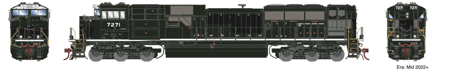 In mid-2022, Progress Rail purchased a batch of ex-NS SD70ACU’s. Some of them had a red “PRLX” hand-written over the old logo, and some others were simply patched out completely as depicted in our models.