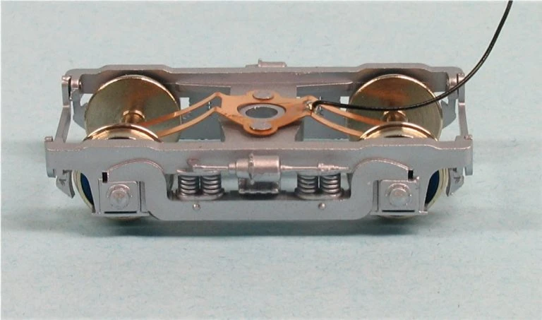 Modern 4 Wheel Passenger Trucks 9′-0″ w/b, complete with pickup wire.