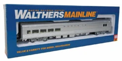 Add a place to relax on your classic streamliner quickly and easily with this WalthersMainline HO Scale 85′ Budd Baggage-Lounge! Nicely detailed, affordably priced and built tough for years of dependable service, this car is based on fluted-side cars used by many railroads. The 85′ Budd Baggage-Lounge is perfect for use with other WalthersMainline HO Scale streamlined passenger cars.