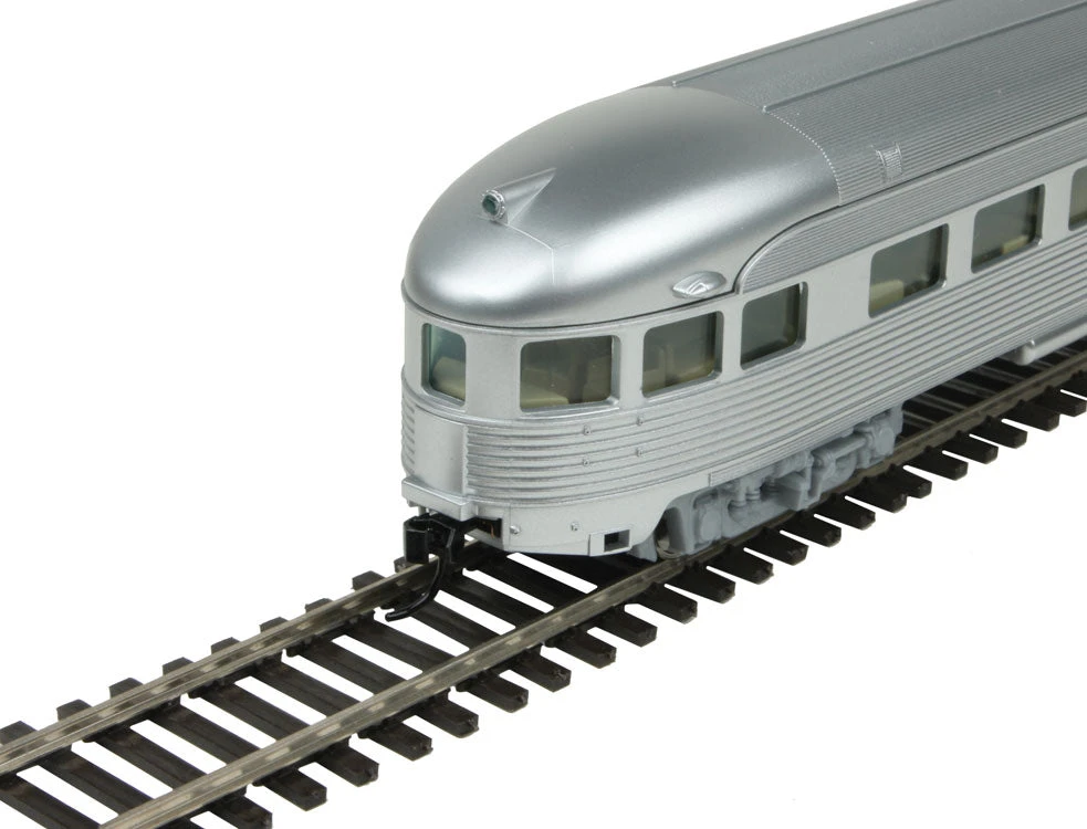 Add luxury lounge space on your classic streamliner quickly and easily with this WalthersMainline HO Scale 85′ Budd Observation! A common car on many trains, the trademark “boat tail” end of the car offered riders a receding view of the rails through wrap-around windows as they relaxed with their favorite beverages or snacks. Nicely detailed, affordably priced and built tough for years of dependable service, this car is based on fluted-side cars used my many North American railroads. 85′ Budd observation are perfect for use with other WalthersMainline HO Scale streamlined passenger cars.